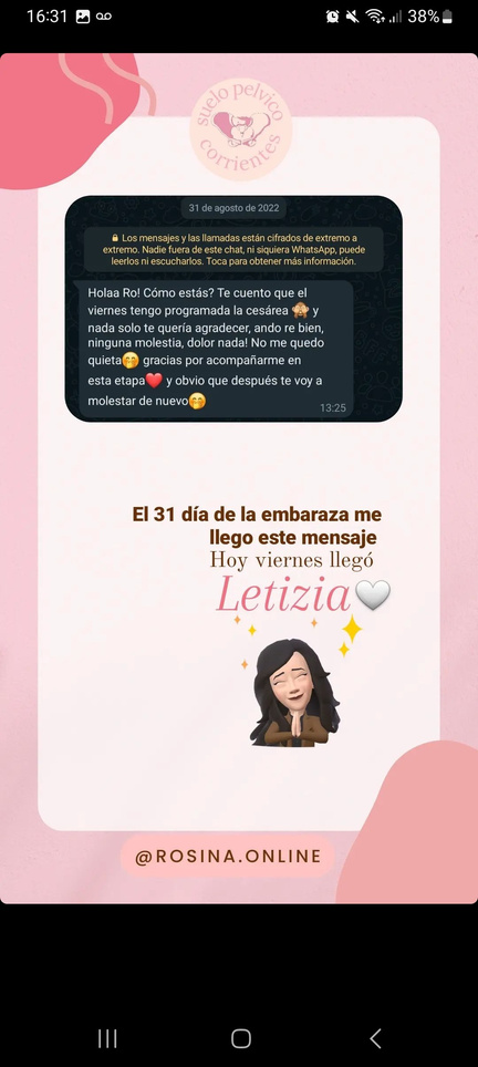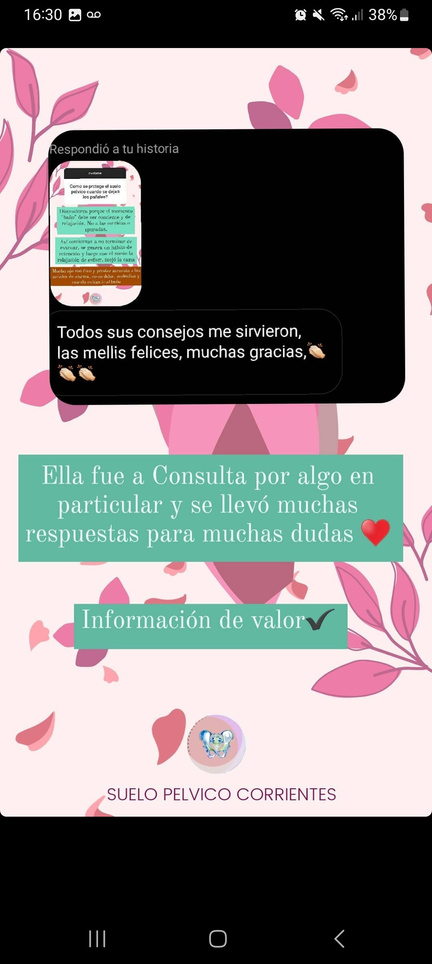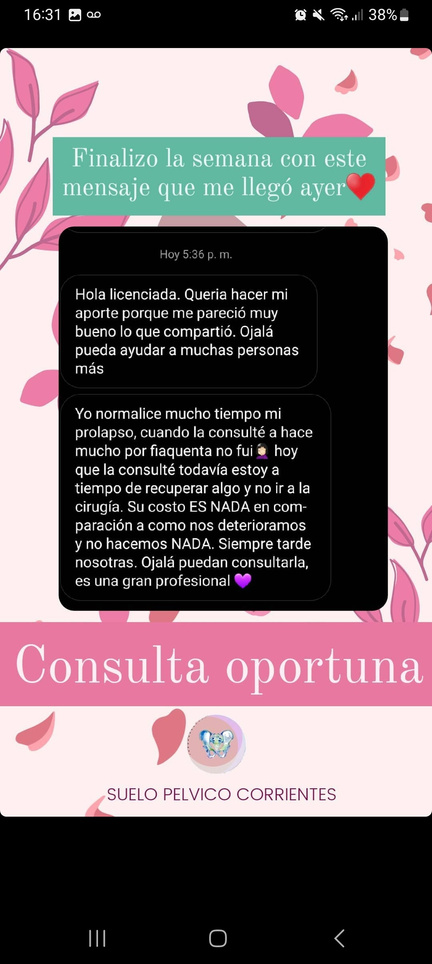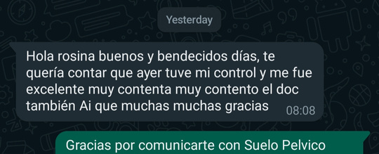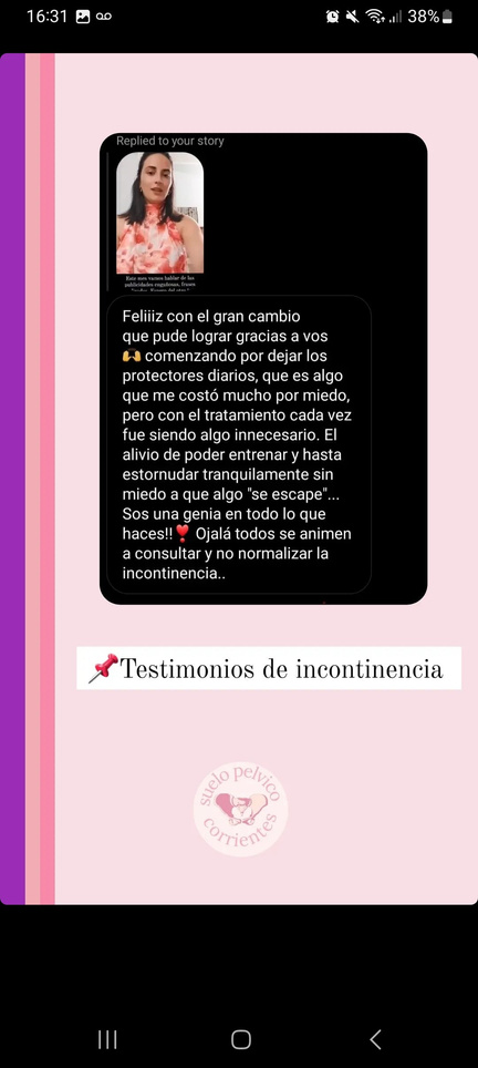MAIRA: paciente post tratamiento para incontinencia urinaria de esfuerzo.